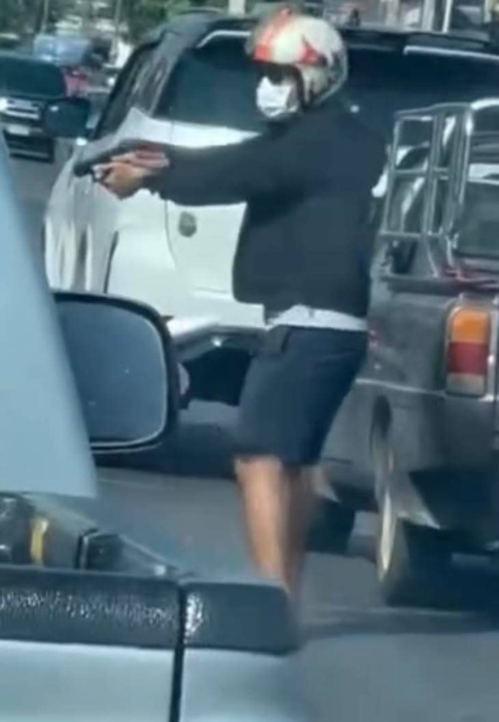 สำหรับประเด็นที่คนสงสัยกันทั้งโซเชียลว่าชายที่ขี่รถจักรยานยนต์แล้วชักปืนสวนคือใคร